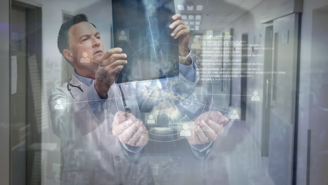 - Doctor Analyzing X-Ray with Digital Data Overlay in Hospital