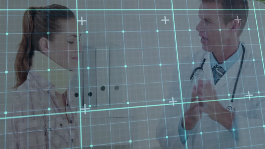 Doctor Checking Cervical Collar Fit with Digital Grid Interaction Video