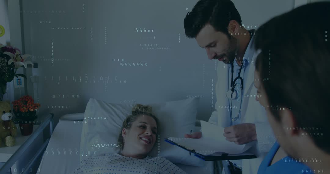 Video featuring doctor conducting bedside rounds while patient smiling and nurse updating chart. Scene conveying compassionate patient care and collaborative clinical teamwork in hospital ward. Visual elements include stethoscope, clipboard, hospital gown, bedside flowers, clinical notes and friendly staff interaction. Useful for healthcare marketing, hospital websites, patient education videos, medical training modules, staff recruitment campaigns, telemedicine demos and electronic health record presentations. Recommended usage in hero banners, website background footage, social media ads, internal training, patient testimonial segments and healthcare annual reports. Clip pairing well with voiceover about quality care, recovery stories, teamwork and clinical workflow improvement.