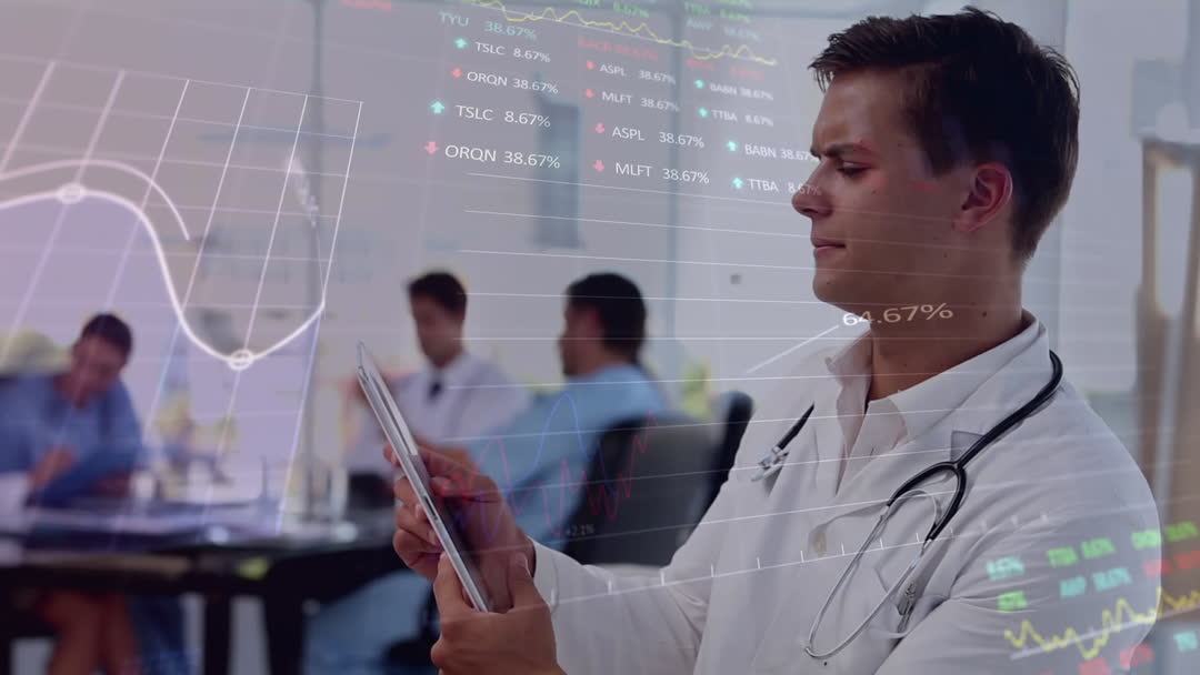 Doctor Using Digital Tablet with Advanced Data Analytics in Hospital Video