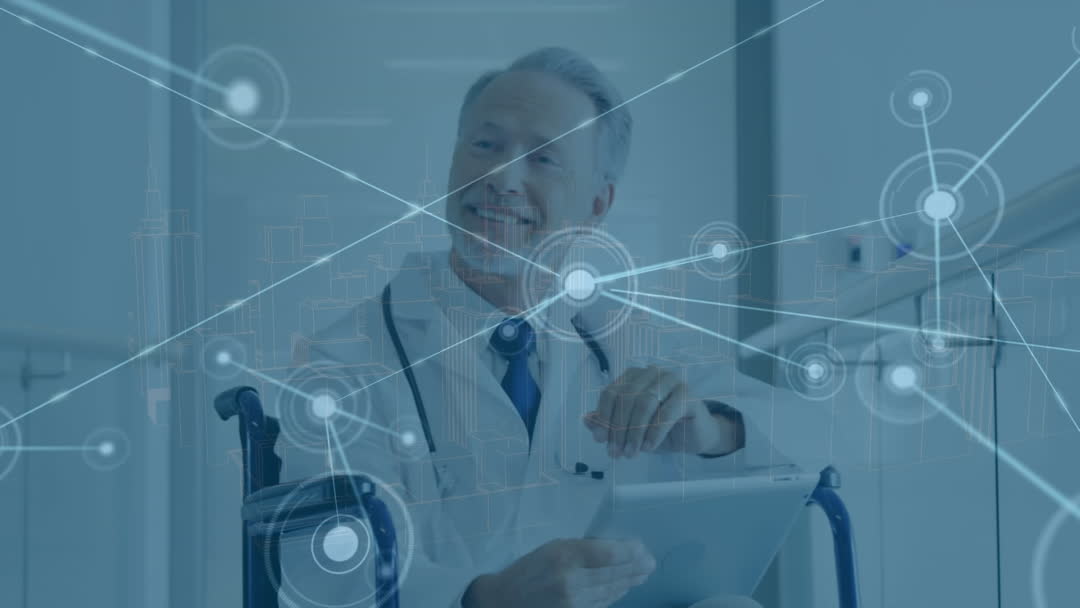 Doctor Using Digital Tablet with Network Connections Overlay Video