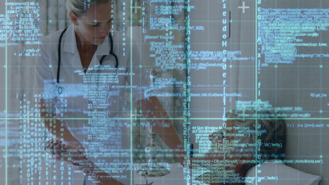 Conceptually showcasing the merger of healthcare and technology, this video illustrates a doctor attending to a senior patient while overlaid with digital data. Useful for conveying themes of modern medicine, healthcare innovation, and patient management. Great for articles or presentations focusing on telemedicine, technology in healthcare, and elderly care advancements.
