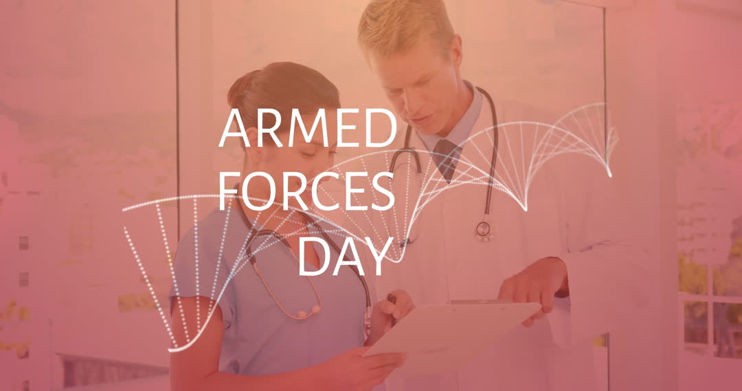 Concept highlights medical professionals discussing important matters, the spirit of Armed Forces Day. Useful for advertising healthcare related to military, articles on health services supporting armed forces, promotional materials for medical teams working with the military, and raising awareness about healthcare professionalism and dedication.