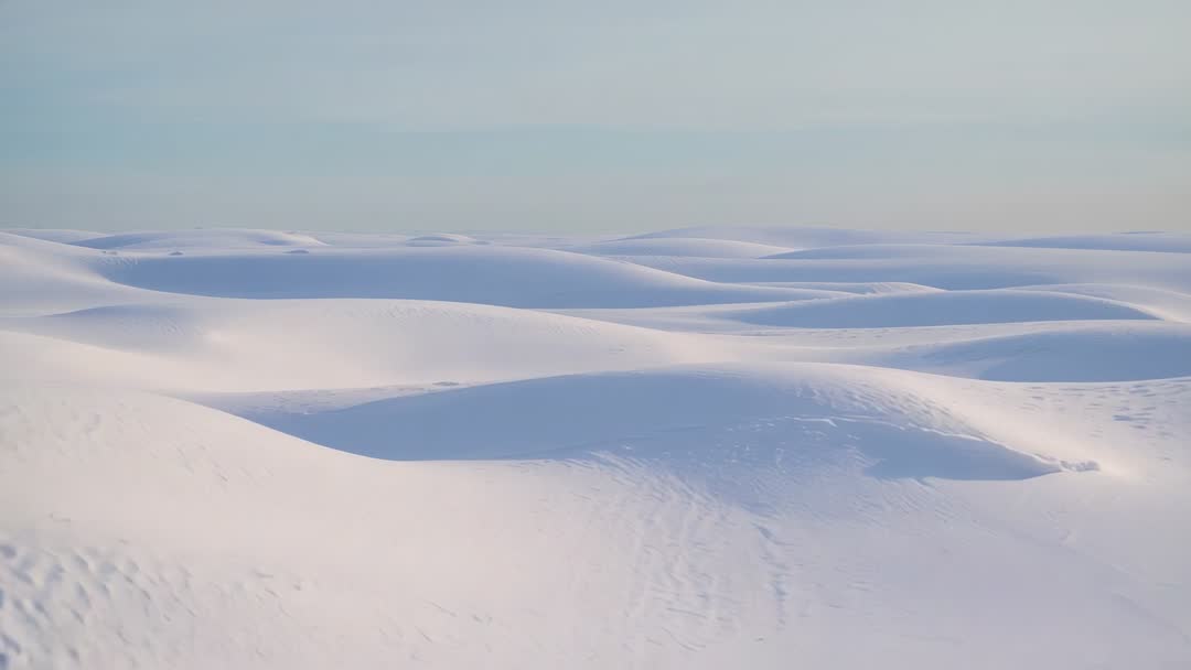 AI Generated Video. Video dollying across wide rolling white sand dunes during soft morning light, revealing distant crests and delicate ripples. Gentle camera movement creating calm, meditative mood and slow cinematic pace. Pastel sky and smooth contours producing minimalist, abstract composition working well as background. Serving travel and tourism promos, wellness and meditation content, website hero banners, broadcast intros, corporate presentations, advertising backplates, and social media loops. Footage looping easily for continuous backgrounds; color grading pairing well with cool blue and warm rose tones. Consider adding ambient soundtrack or soft instrumental to enhance tranquil atmosphere. Suiting editorial pieces about nature, desert conservation, minimal design, or creative visual effects.