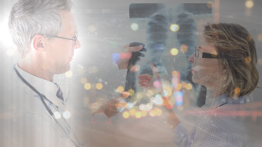 Double Exposure of Doctor Discussing Hearing Aid with Patient Video