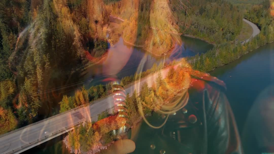 Double Exposure of Musicians Performing by Scenic Autumn Lake Video
