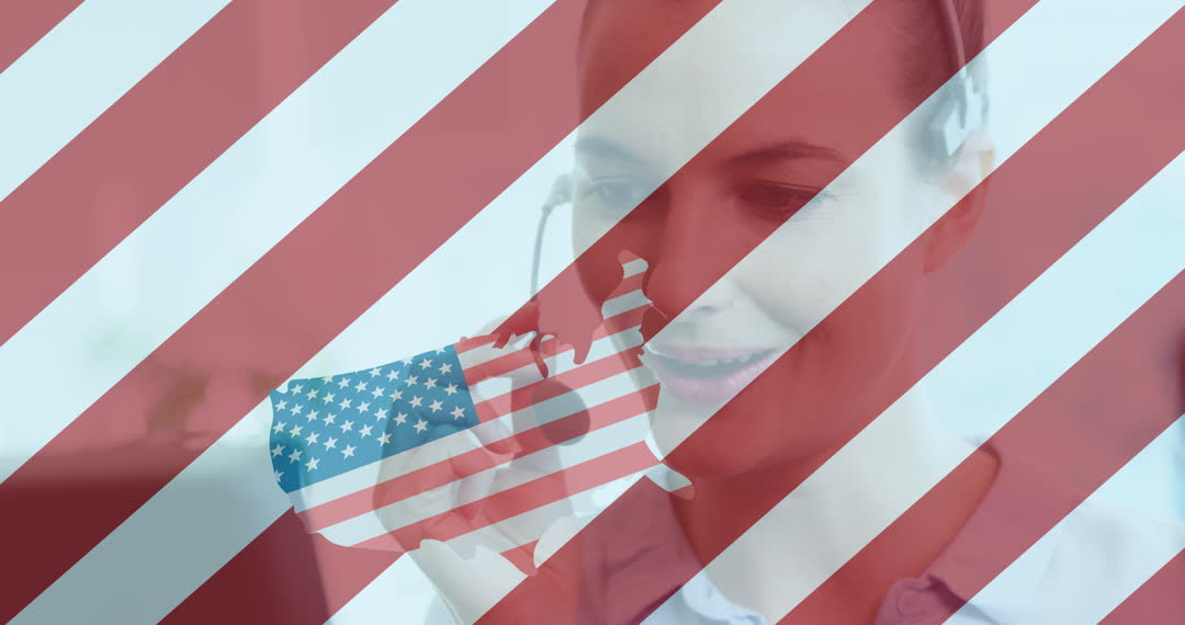 Dual representation featuring a professional woman actively engaging in a call while overlaid with Greece flag videory. Suitable for concepts involving international communication, fostering connections with Greece, and promoting customer service excellence in bilingual or multicultural settings. Ideal for use in articles or presentations on global business interactions, contact support operations in Greece, or telesales network entities.