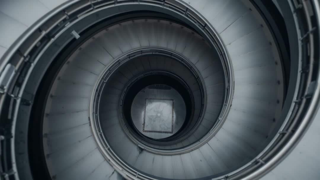 - Dramatic Descent Inside Spiral Staircase with Abstract Geometric Style