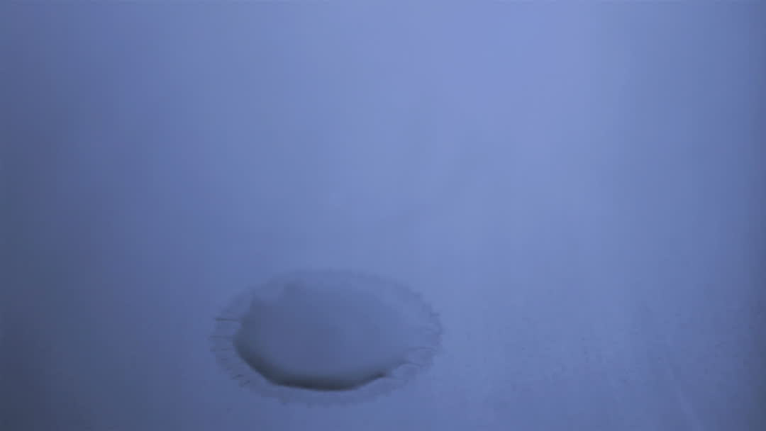 Captures drops of water falling onto a blue surface in super slow motion, creating ripple effects. Ideal for concepts related to calm, serenity, and natural beauty. Suitable for use in advertisements, meditation applications, or scientific studies about fluid dynamics.