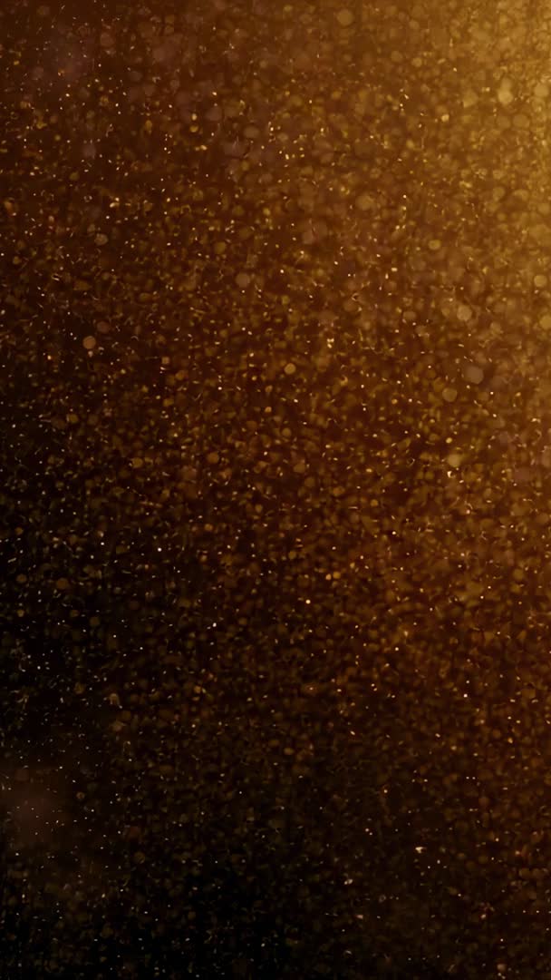 - Drifting amber particles in vertical loop with warm golden bokeh and cinematic glow
