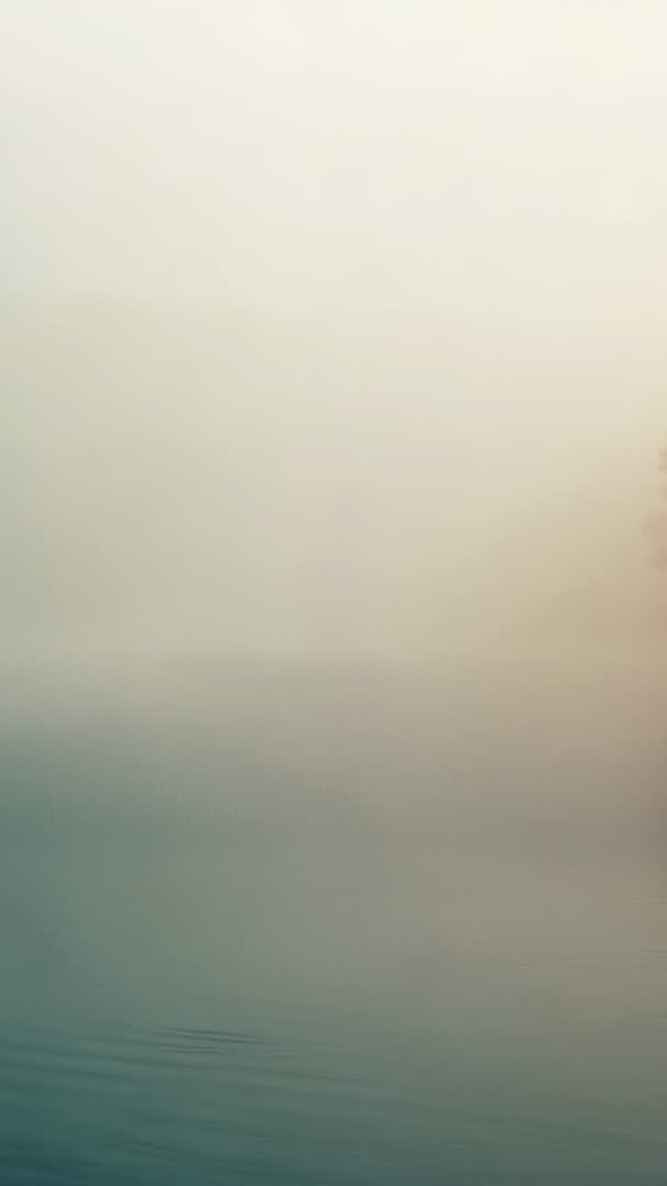 AI Generated Image. Vertical video showing drifting camera panning right across misty lake, revealing gentle ripples on calm water and bare twigs silhouetted against hazy horizon. Soft pastel palette and slow motion movement creating tranquil, cinematic mood ideal for mobile storytelling. Shot in 9:16 vertical orientation with wide negative space on left suitable for text overlays, titles, or logo placement. Use for meditation app backgrounds, social media stories, Instagram and TikTok reels, website hero sections, documentary b-roll, environmental or travel promotions, mood-setting cutaways, and ambient loops.