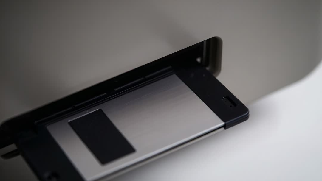 AI Generated Image. Footage showing drifting camera pulling back to reveal metal plate sliding into tray slot on tabletop. Tight macro framing highlighting texture of brushed metal, black plastic edges, rectangular patch detail. Neutral tones and shallow depth of field creating moody, technical aesthetic. Useful for technology and manufacturing projects, providing close-up b-roll for product assembly tutorials, industrial process explainers, hardware marketing, safety training. Clip working well as background visual for websites, presentations, social media ads, explainer videos, allowing editors to crop or apply slow motion for emphasis. Suiting electronics manufacturing, robotics demonstrations, prototyping content, technical documentation, tool catalogs, industrial design portfolios.