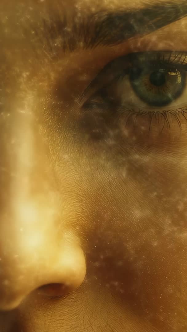- Drifting Golden Mist Revealing Eye and Nose in Warm Ethereal Macro Portrait Vertical Video