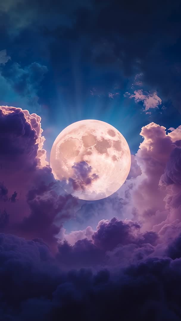 - Drifting Purple Clouds Revealing Warm Full Moon with Backlit Rays Vertical Night Video