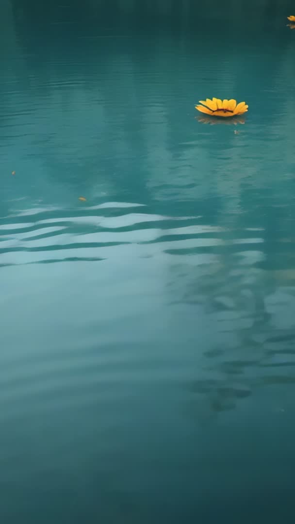 - Drifting Sunflower Floating Across Calm Teal Pond Vertical Video