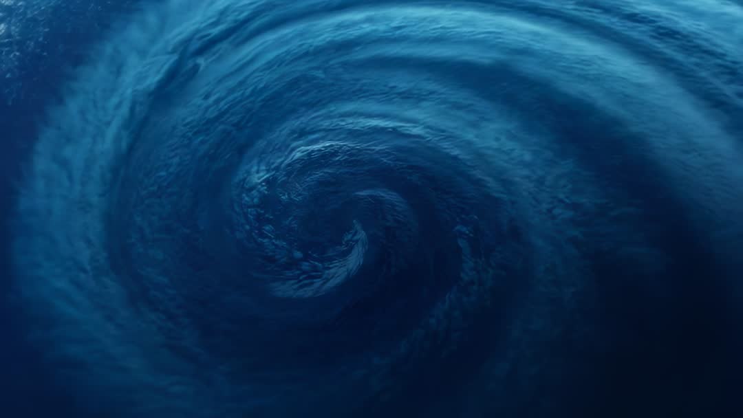 - Drone Aerial Footage of Rotating Ocean Vortex Tightening into Dark Spiral Whirlpool