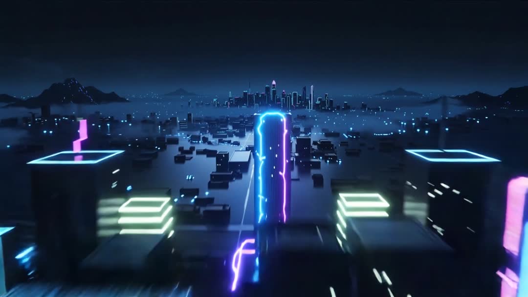 AI Generated Image. Video clip showing drone sweeping across neon-lit cybercity at night, revealing towering skyscrapers wrapped in glowing strips and branching electric arcs over fog-filled grid. Camera movement pulling back toward distant skyline, creating sense of scale and depth while neon pulsing and reflections shimmering on cloud layer. Color palette focusing on deep blues, magentas and cyan for futuristic mood. Suitable for use in tech commercials, sci-fi trailers, game cinematics, motion graphics, website hero backgrounds, corporate presentations about AI or smart cities, streaming intros, and virtual reality previews. Serving as loopable background for event visuals, electronic music visualizers, or promotional material for blockchain and metaverse projects. Color grading and motion blur adjustments enhancing cinematic feel and matching brand identity.