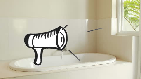 - Dubbed Animation of Megaphone Overlaying Modern Bathroom