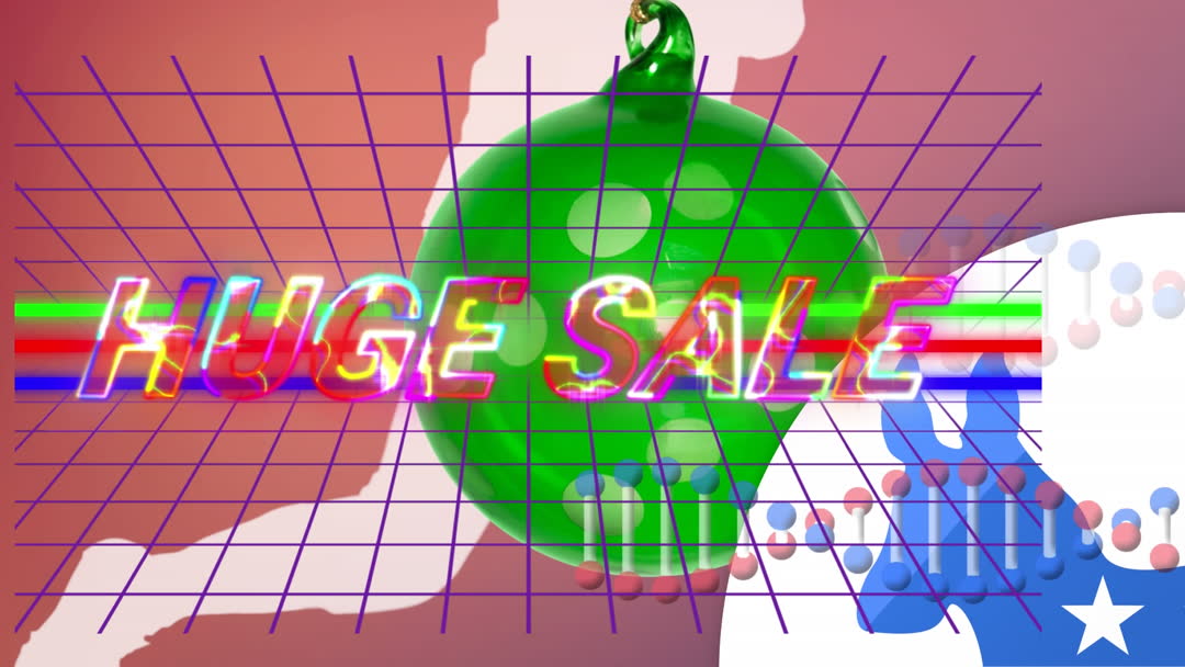 This video features a colorful and dynamic animation theme with 'huge sale' prominently displayed. This could be ideal for use in advertising campaigns, promoting sales on social media platforms, or as part of digital marketing strategies. The vibrant colors and geometric shapes create an eye-catching design perfect for online retail announcements and festive promotions.