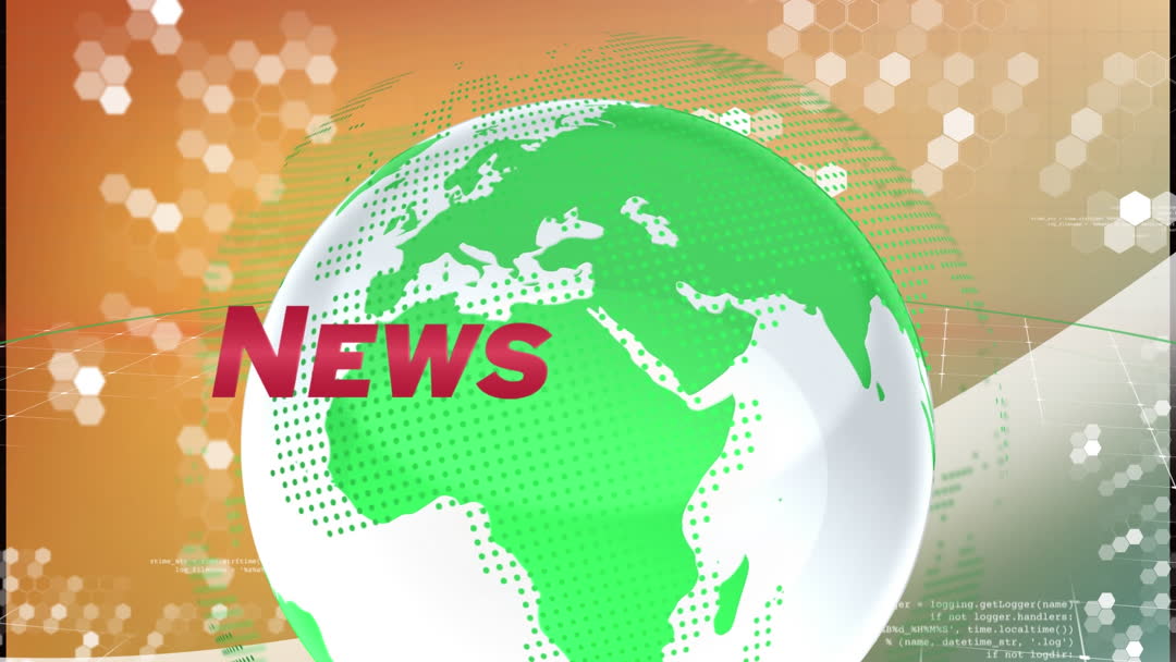 Vibrant animation showcasing a dynamic globe with bold news headline across digital backdrop. Features visual elements representing global connections and network data processing. Ideal for use in multimedia presentations, video backgrounds, or digital media content related to global business, technology updates, or news broadcasting.
