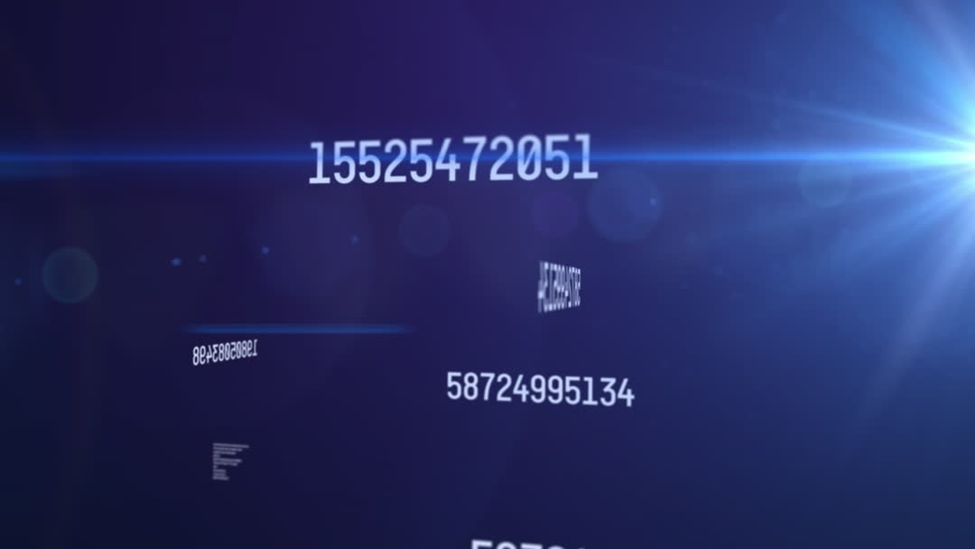 This visual shows an animated display of numbers symbolizing data flow and processing within networks. The blue hue and light streaks give a futuristic feel useful for technology presentations, videos involving data analytics, or educational materials explaining digital communication and networks.