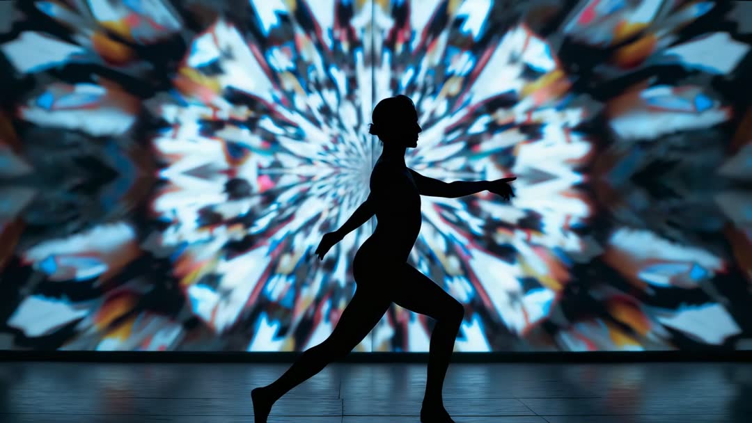 Dynamic Ballet Dancer Silhouette with Abstract Projection Video