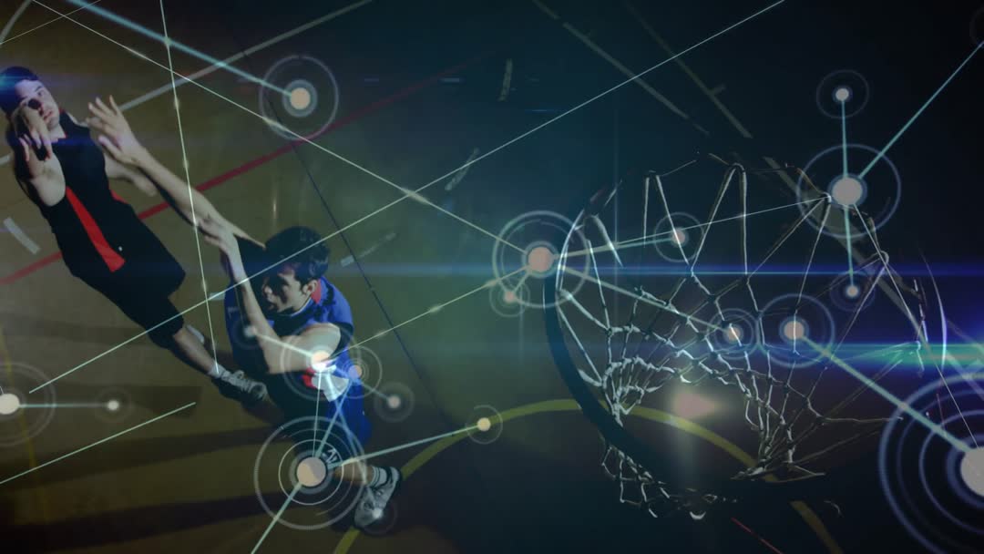Dynamic Basketball Action with Technology Integration Overlay Video