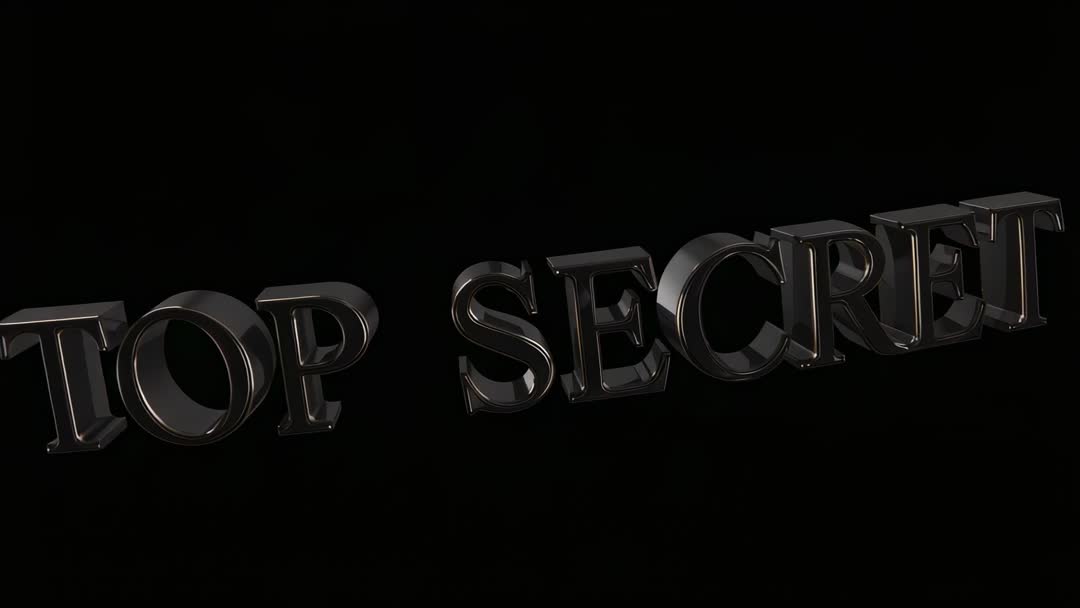 AI Generated Image. Camera dollying forward while metallic TOP SECRET typography moving left across deep black void, showing subtle rim glints and chrome reflections. Lighting creating high-contrast glossy finish with strong specular highlights and deep shadow separation. Motion-work offering deep perspective and cinematic pacing for dramatic reveal sequences. Serving for title sequence, trailer opener, corporate security presentation, news graphic, crime or spy documentary, teaser animation, or social media short. Recommending pairing with suspenseful soundtrack, slow easing, and color grading preserving deep blacks and chrome highlights. Delivering ready-to-use 4K assets, loopable intro clips, lower-third overlays, and thumbnail stills for instant publishing. Providing flexible timeline integration and editable typography layers for custom messaging.