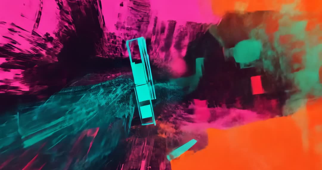 AI Generated Image. This vibrant digital artwork showcases a dynamic collision between teal and neon paint splatters, enhanced through motion graphics. The energetic fusion of colors and textures creates a visually striking and lively aesthetic, perfect for use in digital art collections, multimedia presentations, or as dynamic backgrounds for various creative projects. Ideal for artists, graphic designers, and creative enthusiasts looking for inspiration in transformative and energetic visual expressions.