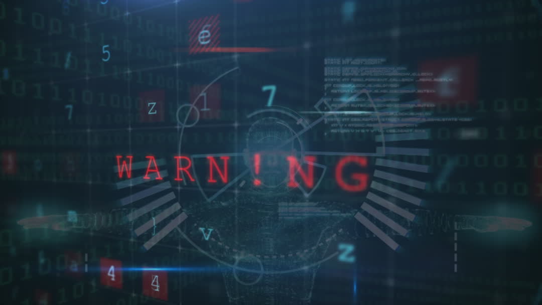 Digital warning incorporated in a data-heavy interface, emphasizing cybersecurity risks. Suitable for topics on online security, cyber threats, strategy blogs, presentations, and educational materials related to digital safety.