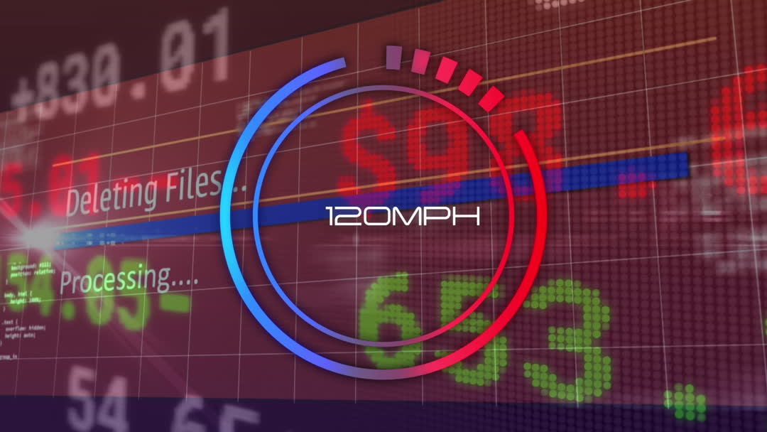 Presents a visually engaging animation of data processing and speed metrics, ideal for illustrating concepts in technology, digital transformation, and global business strategies. This visual can be used in presentations, technology blogs, and educational videos to demonstrate speed and efficiency in data handling and digital interfaces.