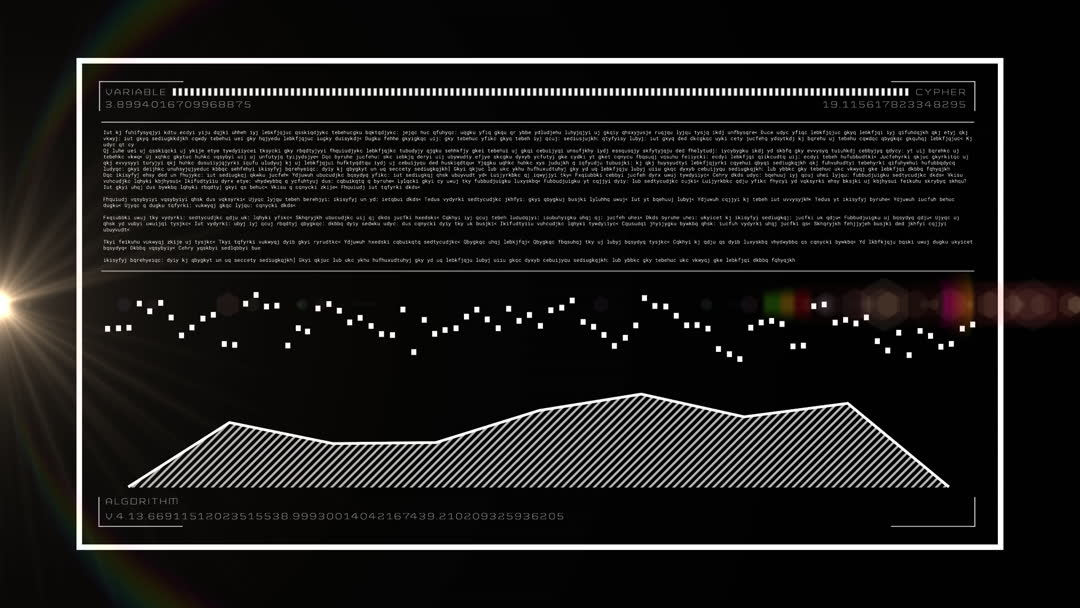 A conceptual animation featuring data processing with fluctuating light spots overlaid on digital data and algorithm visuals. Use this video for themes related to technology, cyber security, global business, or futuristic interfaces to illustrate the dynamic nature of modern digital solutions and analytical processing.