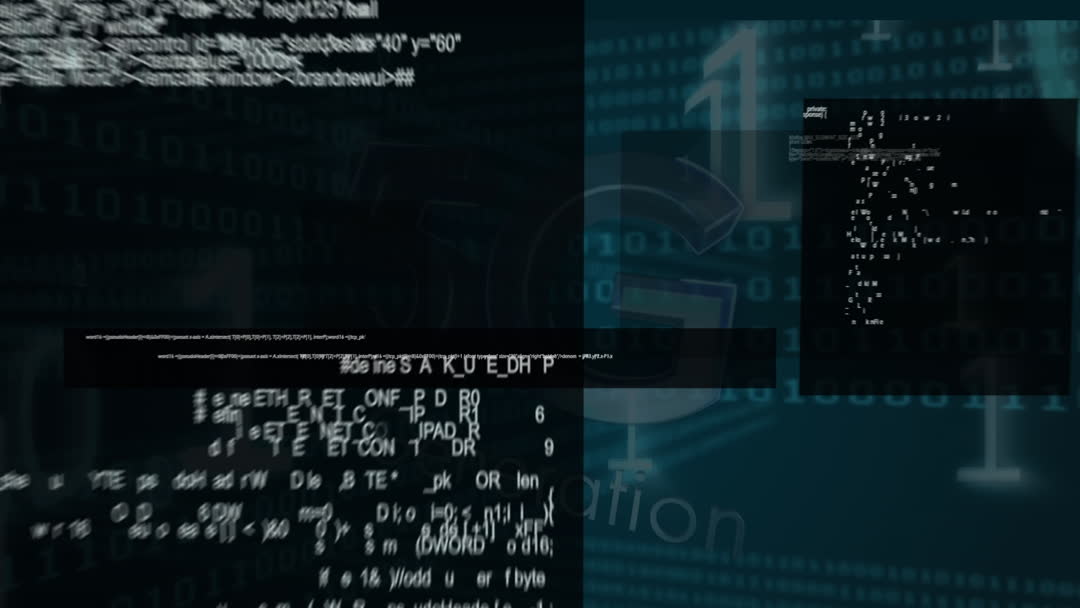 Dynamic representation of data processing alongside binary codes lends itself well to illustrating aspects of digital innovation and computing. Ideal for emphasizing themes of network security, software development, programming, or technological advancements in presentations and videos focused on tech industries and digital data concepts.