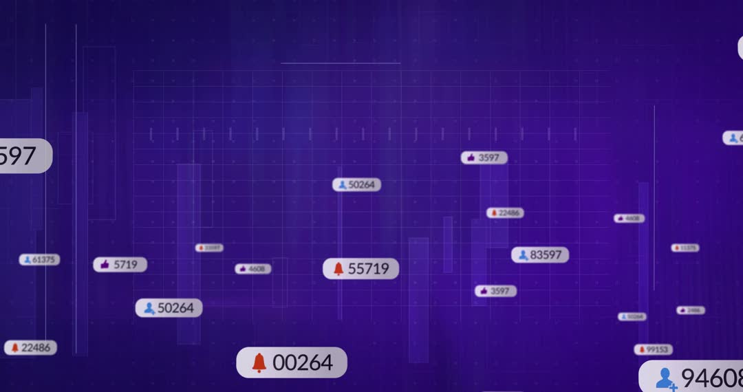 This digital video of a dynamic data visualization interface displays animated metrics and charts, suitable for illustrating concepts in tech, finance, marketing, or web design. The vibrant look and modern tech theme make it ideal for presentations, articles on digital transformation, user analytics, and modern interface design projects.