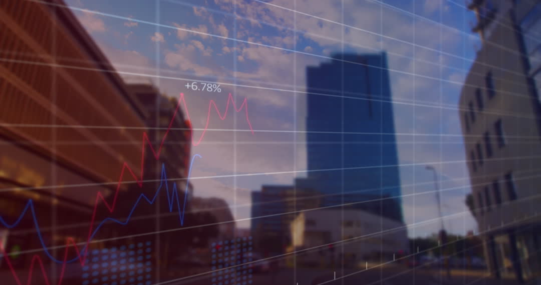 Perfect for use in business presentations, financial reports, economic forecasts, and technology showcases. The video creatively blends a dynamic data visualization overlay with an urban cityscape, symbolizing the intersection of automation and urban growth.