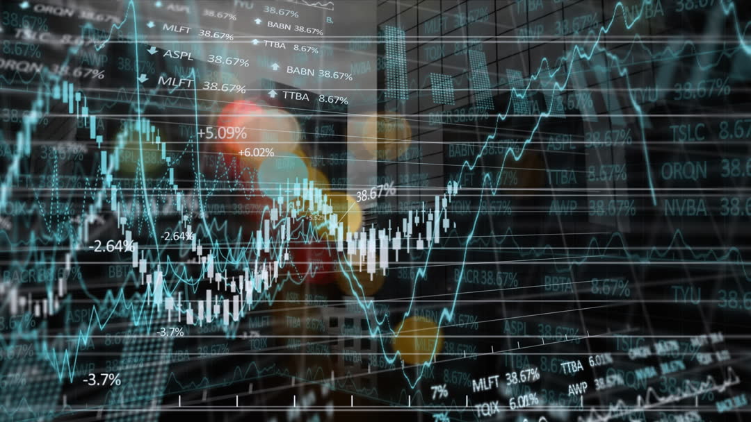 A detailed representation of financial data visualization with graphs and charts overlaying an urban cityscape. This digital depiction effectively combines financial analysis with modern city life, suitable for illustrating concepts of market trends, business analytics, or financial growth. Ideal for use in financial reports, investment presentations, and technological data-driven content.