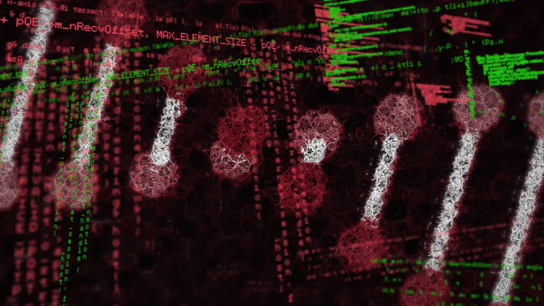 This abstract animation visualizes DNA strands in a dynamic digital interface perhaps poised for use in scientific presentations, educational modules, or technology conferences to signify concepts related to data processing, genetic research, and technological innovation.