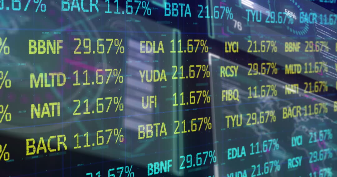 The vibrant selection showcases a dynamic digital screen with financial data and stock market trends. Highlighting fluctuating percentages and an array of enterprise symbols, it offers a compelling representation of global financial dynamics and continual market variations. By using animated graphics and highlighting critical financial parameters, this content is ideal for use in business presentations, financial reports, and educational material about market behaviors and investment strategies.