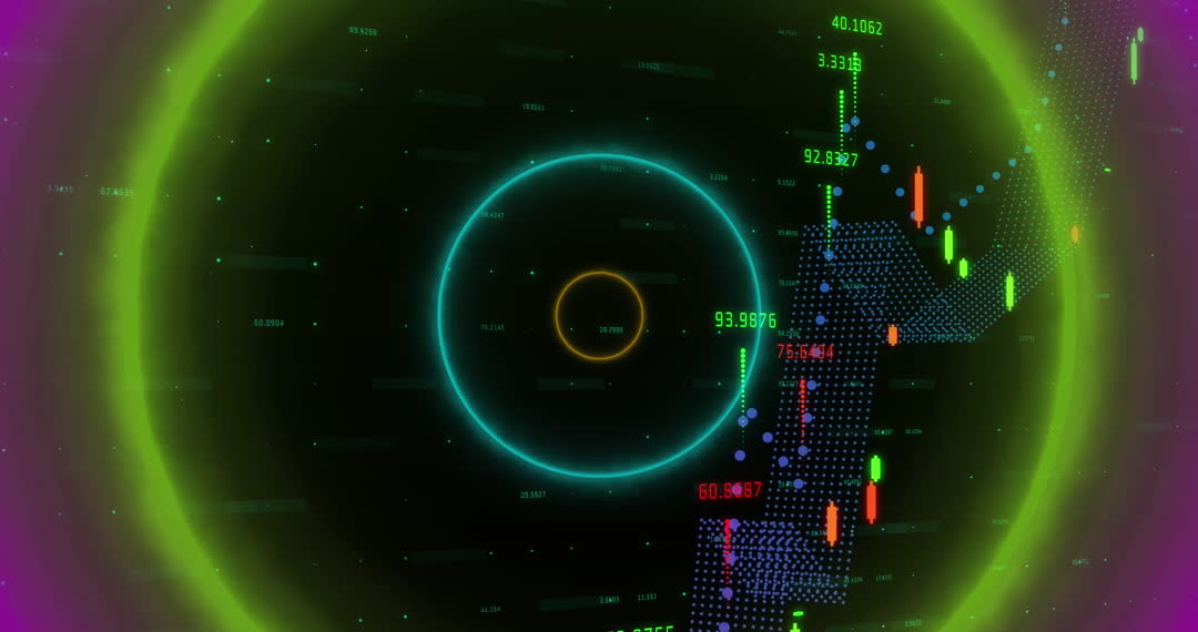 This dynamic visual portrays fluctuating stock market trends using vivid, colorful graphs and changing numerical data to represent economic shifts. Ideal for presentations on economic trends, financial education, or integrating into digital backgrounds during business confe.ejb174817483unctions or lively corporate envounters'.