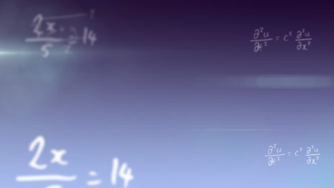 Animated scene features floating mathematical equations over a glossy blue backdrop, suggesting a focus on mathematical and technological advancements. Ideal for use in digital presentations, educational videos, webinars, and content aimed at highlighting concepts in mathematics and technology. Can enhance visual storytelling in topics related to science, research, and innovation.