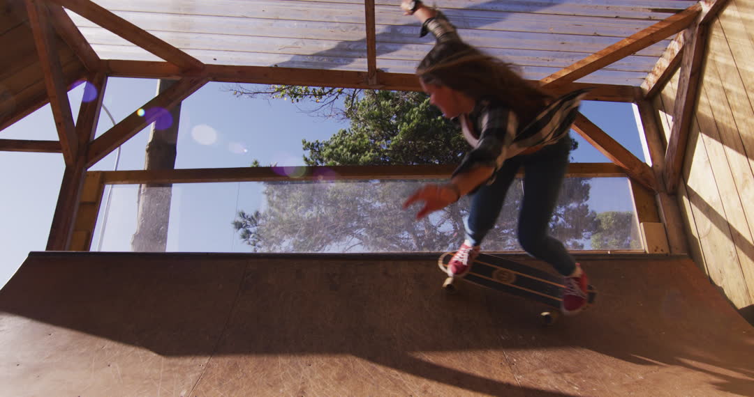 - Dynamic Female Skateboarder in Halfpipe Action