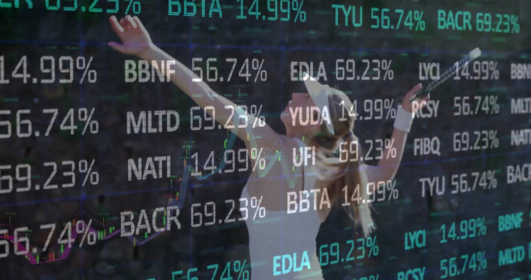 - Dynamic Female Tennis Player with Superimposed Stock Market Charts