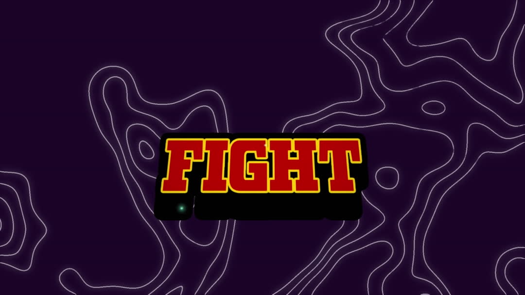 Animation features bold 'Fight' text moving over a purple background with abstract white lines, creating a modern and energetic look. Ideal for video game themes, promotional materials, graphic design projects, digital content for social media, and anything requiring dynamic typography and creative design.