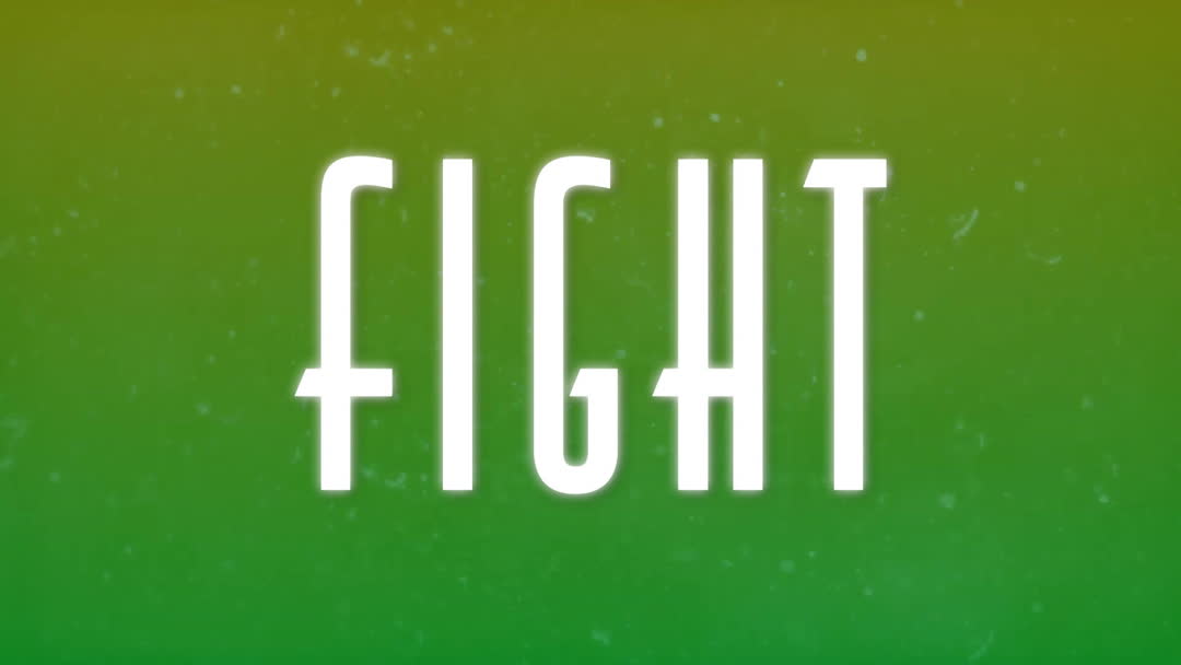This lively animation features the word 'FIGHT' in bold typography, presented over a green and yellow gradient background. The design creates a strong visual impact and conveys a theme of motivation or determination. Perfect for use in advertising campaigns, inspirational presentations, or motivational content. Ideal for projects needing a vigorous and dynamic visual that captures attention and sends a strong message.