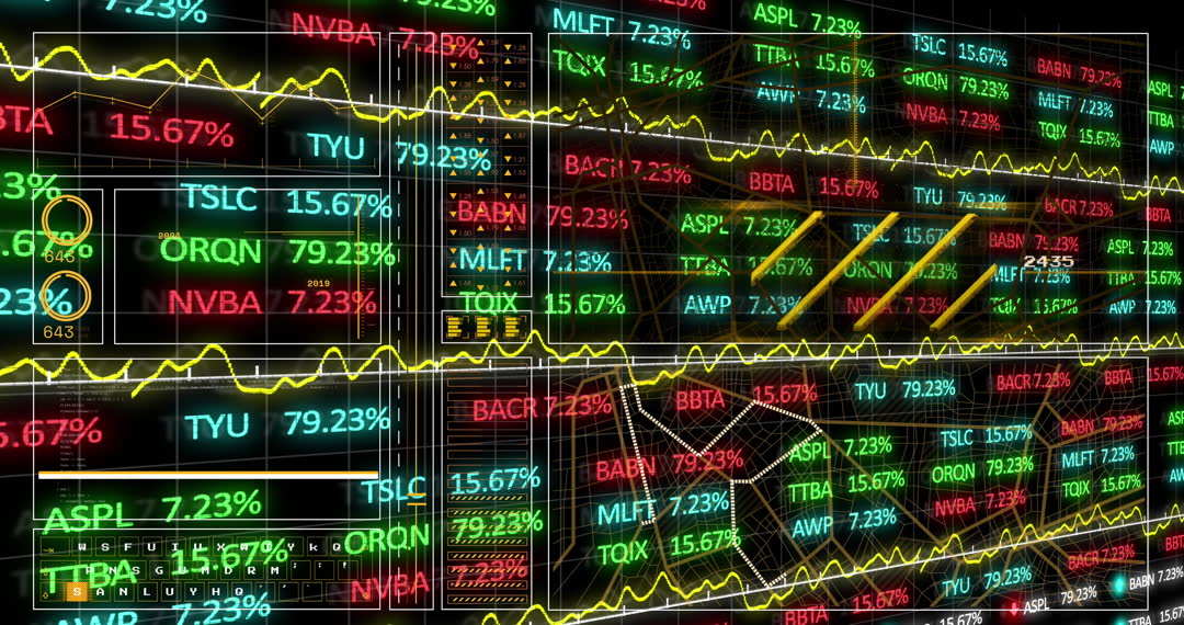 This digital representation features animated stock market data, useful for illustrating complex economic concepts or financial analysis scenarios. Perfect for use in presentations focused on business forecasting, economics lectures, or financial software demonstrations.
