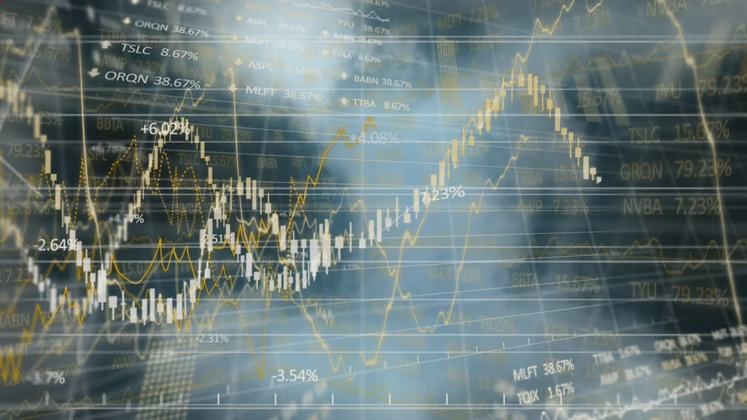 This visual captures animated financial data processing with fluctuating graphs, illustrating complex statistical information and global business trends. Useful for presentations on finance, market analysis, or economic trend discussions, as it effectively portrays dynamic and data-driven environments.
