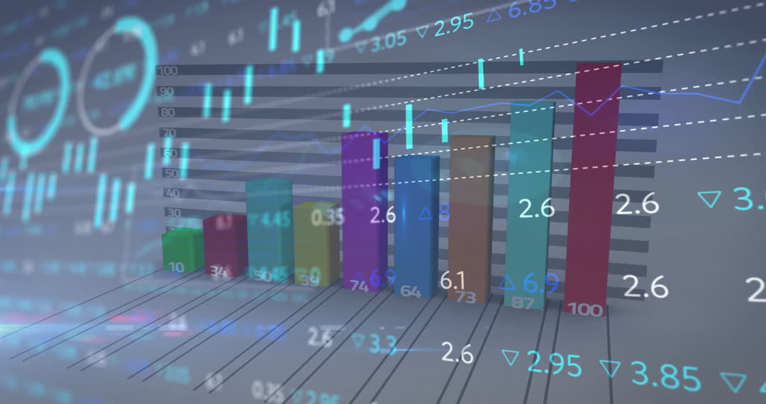 Visual featuring animation of financial graphs and statistics, displaying dynamic and colorful data sets and numbers. Ideal for illustrating financial reports, economic analyses, business presentations, and investment guidebooks, conveying active market developments and data-driven strategies.