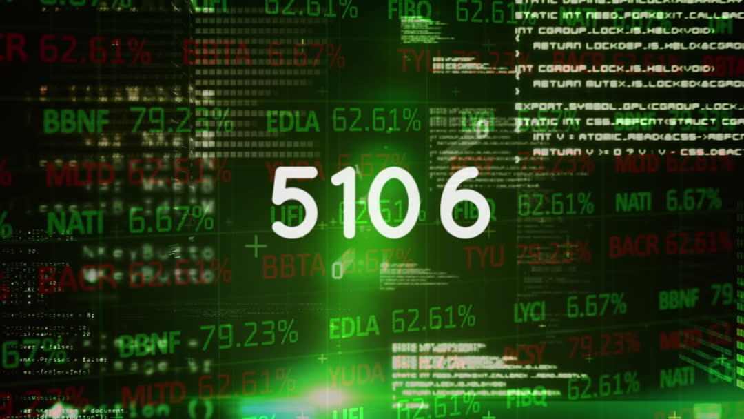 Animation illustrating financial data evolving dynamically, overlaid upon green illuminated codes and numbers typically associated with stock exchanges and financial markets. This is ideal for emphasizing trends in finance, technological impact on communication methods in business settings, or discussions about economic growth and forecasts. The green elements hint arab lumen or wealth indicators shared in finance contexts.