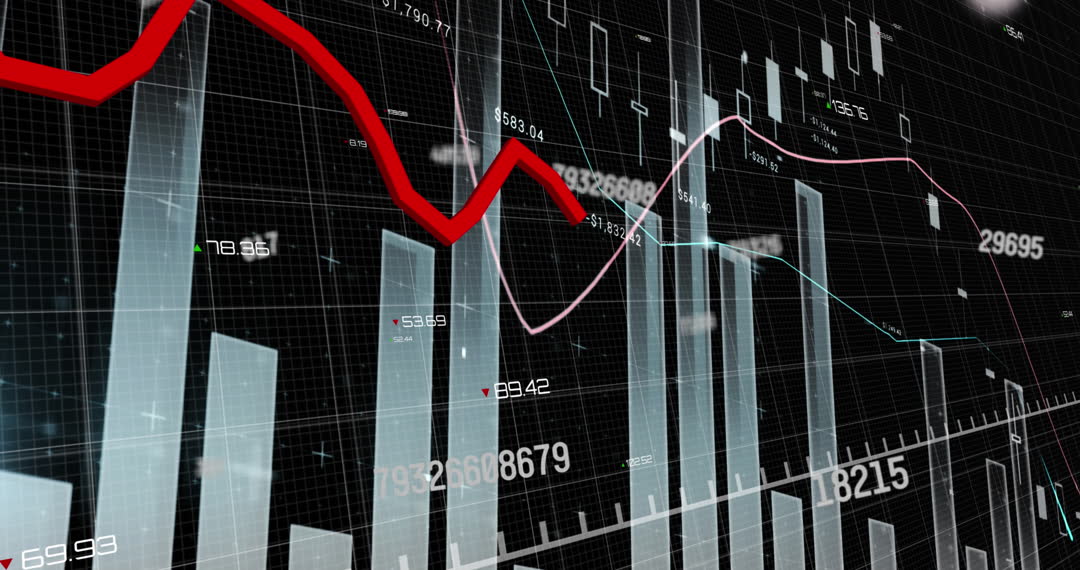 This visualization displays dynamic financial data with changing numbers and fluctuating market trends, representing stock market activities and modern economic conditions. Ideal for presentations, reports, articles on finance, economics, and technology-focused business strategies.