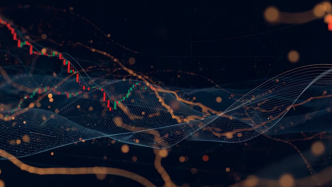 AI Generated Image. Video visualizes digital financial market analysis with dynamic charts and candlestick bar patterns, illustrating trend shifts in real-time. Ideal for businesses, educational content, or tech blogs probing into market analysis methods, data-driven decision making, futuristic technology in AI-driven analytics, or demonstrating economic trends visually.